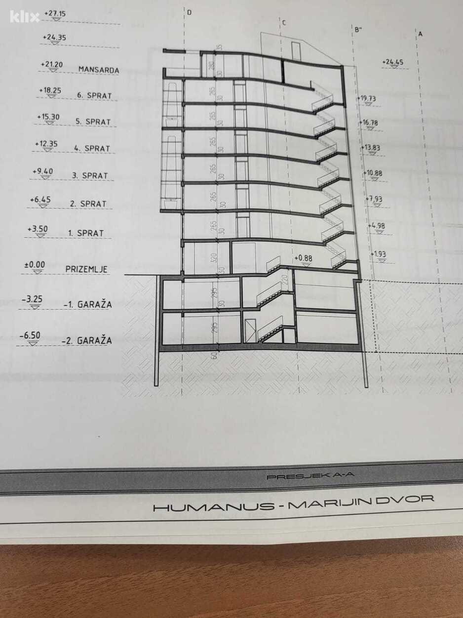 U idejnom projektu iz 2013. godine navodi se da će objekat imati garaže koje se protežu na dva podzemna sprata, šest spratova i potkrovlje.
