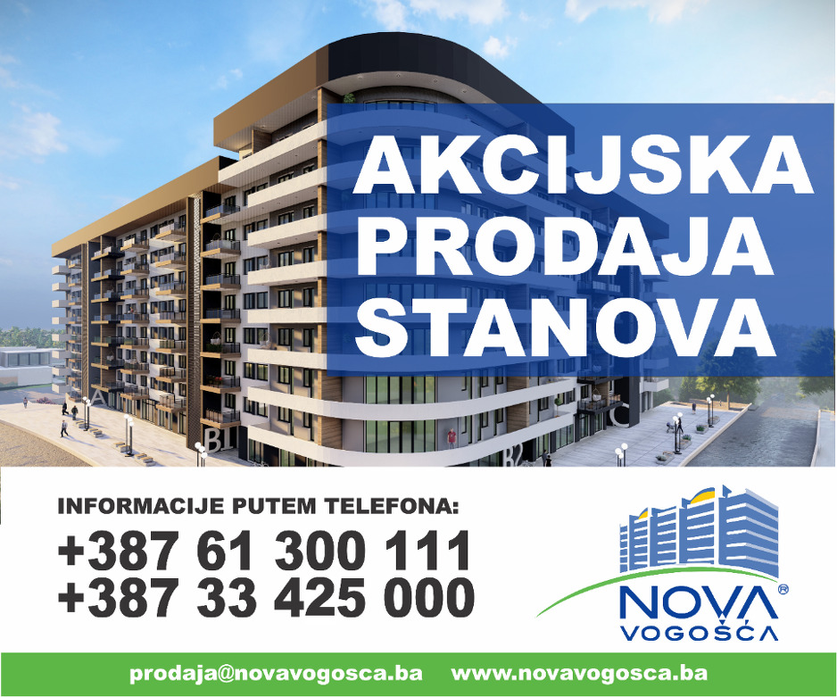 Kompanija Nova Vogošća d.o.o. Sarajevo sa zadovoljstvom ističe da je u toku akcijska prodaja stanova u izgradnji sa atraktivnim uslovima plaćanja i specijalnim dodatnim pogodnostima.